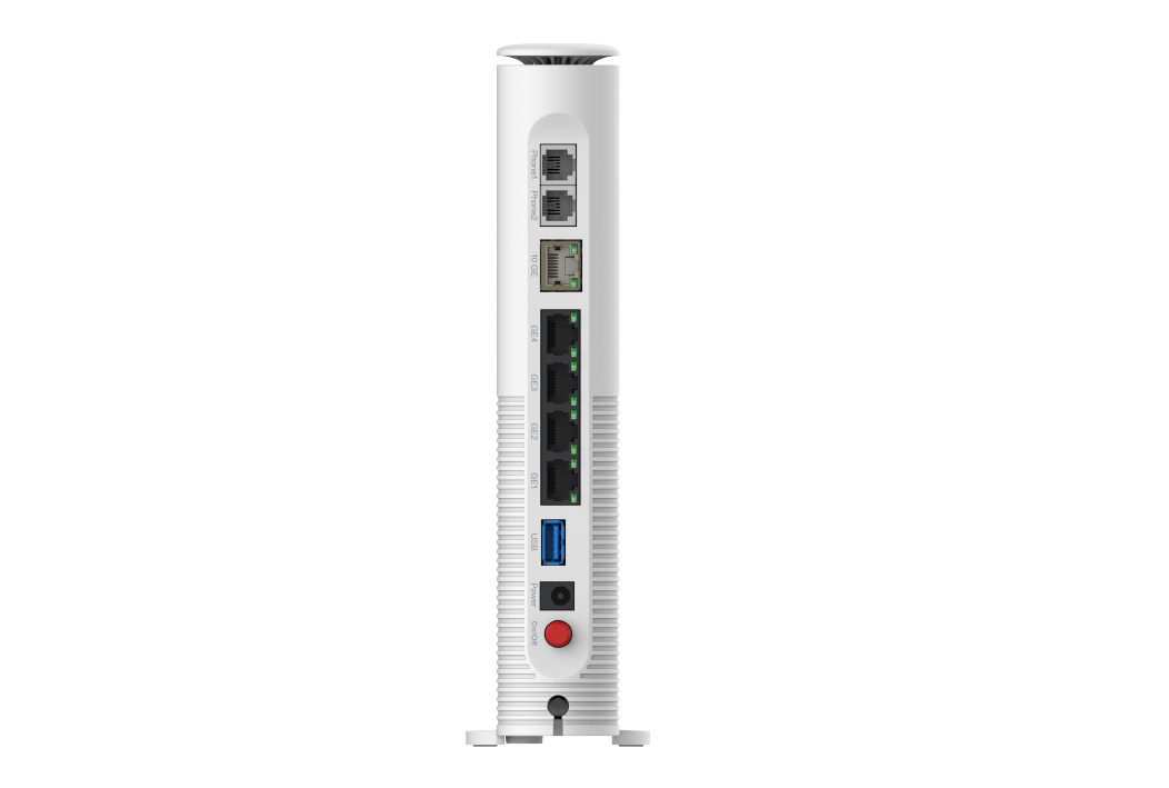 The ZXHN F8748Q is a BE19000 XGS-PON Wi-Fi 7 gateway that provides one 10GE LAN port, four GE LAN ports, two phone ports, and triple band 4 x 4 Wi-Fi 7 with 320MHz @6GHz. It provides high bandwidth, low latency and multiple connections, meeting the Wi-Fi requirements of homes and small-sized enterprises.